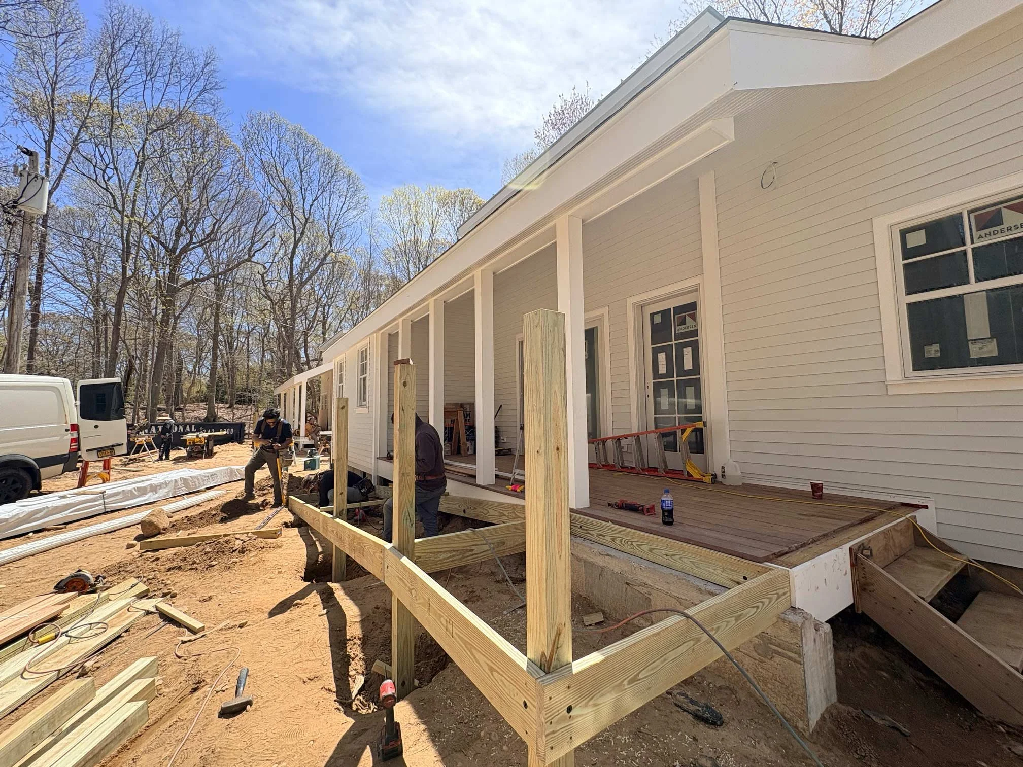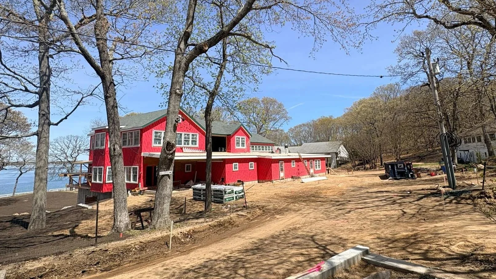 It seems spring has finally arrived on Shelter Island! A hint of green has appeared on the branches of the trees at camp, and—if you look closely—along the recently-completed roof of the Campus Center. As with the former dining hall, this signature green will adorn the window trim and fascia of the building, allowing it to fit right in among the more historic buildings on campus. Major milestones like siding, paving and planting are set to take place during the first week of May.